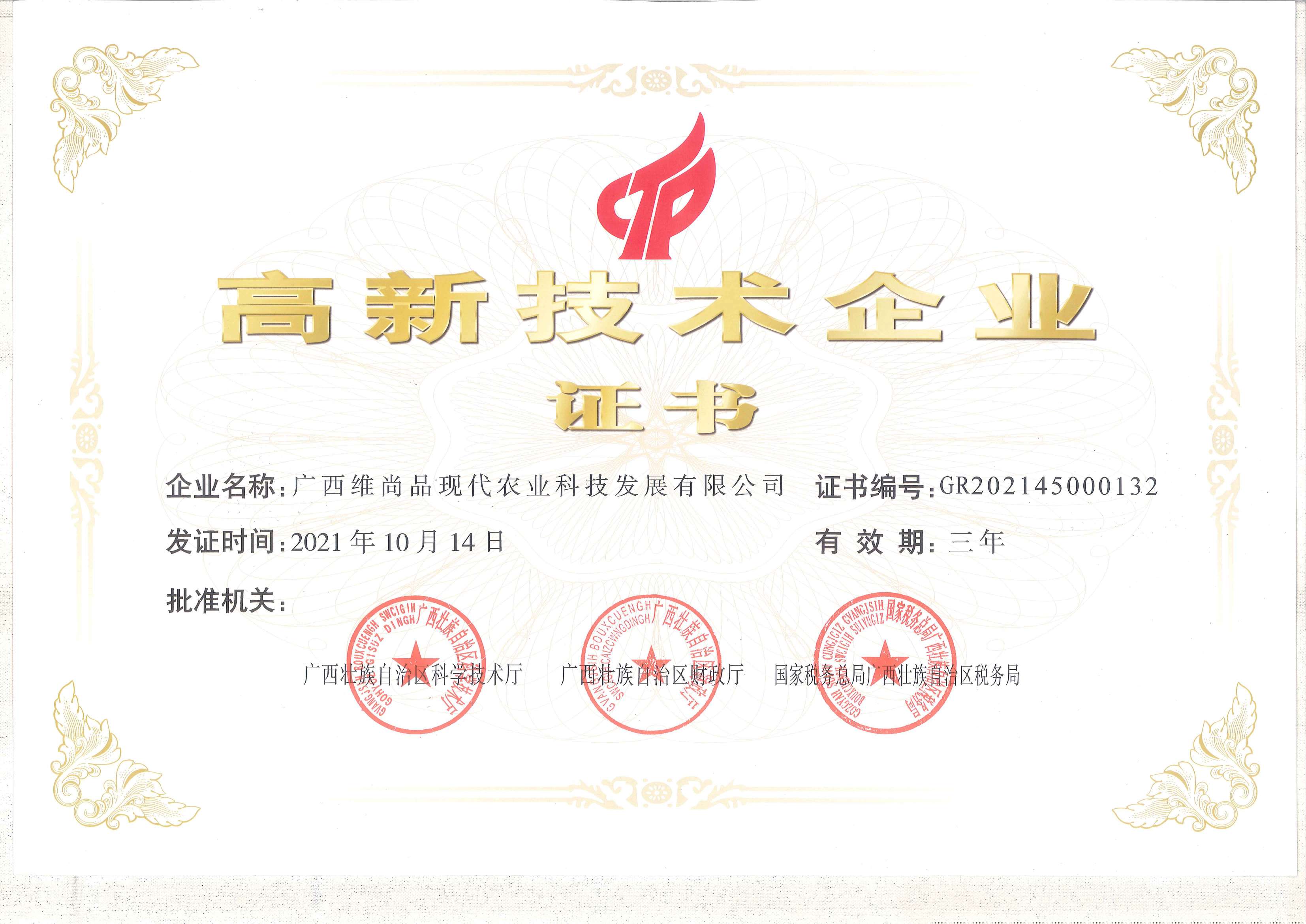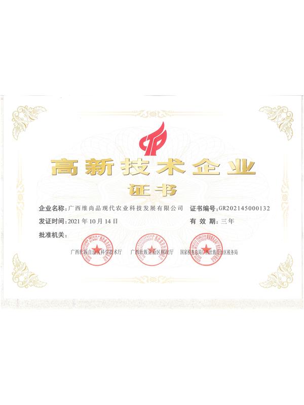 • 2022年維尚品高新企業證書